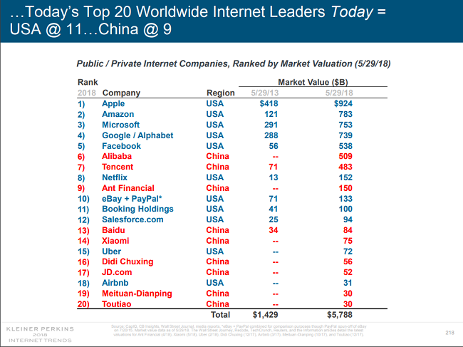 Le même classement indique que Amazone a enregistré un énorme croissance passant de 121 $B à 783$B, soit 547% de croissance, par contre Facebook garde la plus forte croissance avec 860% , passant de 56$B à 538$B.
